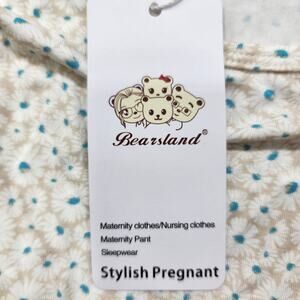 NEW Bearsland Top Womens S Beige Blue Floral Sleeveless Maternity Nursing Tank