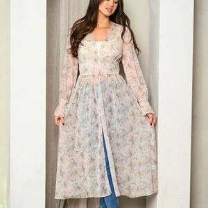 NEW! Beautiful Sheer Cream Floral Long Sleeve Button Front Kimono Duster Kaftan