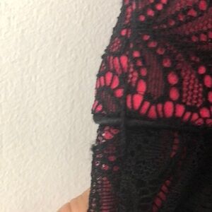 NEW Bebe Black Lace Pink Tulle Prom Winter Formal Dance Fit & Flare Mini L Dress Special Occasion Dress Quinceañera Princess Feminine Girly Girlhoodcore Frilly High School Dance Fairygoth