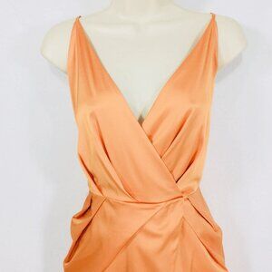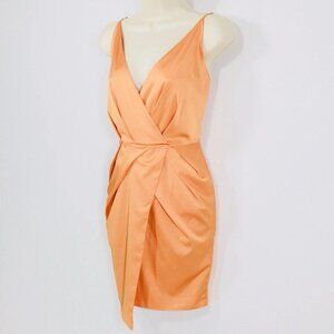 NEW Bebe Dress Size M Amberglow Satin Faux Wrap Fairy Glow Glam