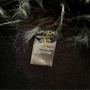 NEW Bebe Faux Fur Statement Collar Oversized Knit Shrug Draped Sweater Black Wh…