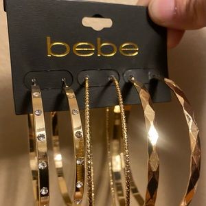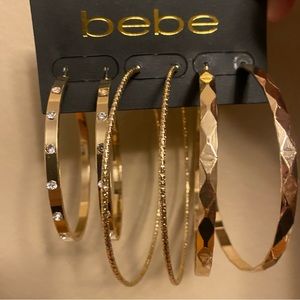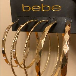 NEW Bebe hoop earrings set. 3 pairs of earrings. Brand new. Gold tone.