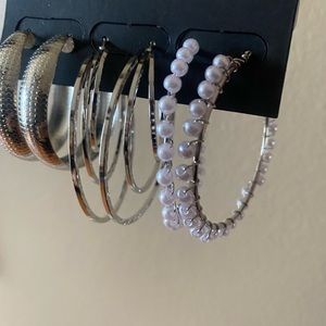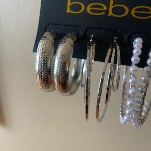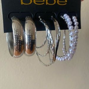 NEW Bebe hoop earrings set. 3 pairs of earrings. Brand new. Silver tone.