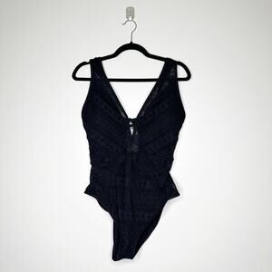 NEW Becca Show & Tell Crochet One Piece Swimsuit Women's Black Size XL X-Large