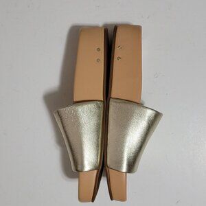 NEW Beek Pelican Leather Platform Sandal Womens 9 Chic Contemporary Gold Shimmer