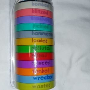 Heres a great party gift. Its bands to put on your beer can or bottle so you dont drink that weird guy with the crusty lips beer at a party. They all are different colors with different words that mean drunk on them. By Fred, the almost as cool as Archie McFee company. Thanks for looking! #703