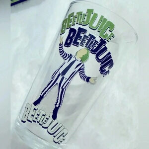 NEW Beetle Juice Pint Glass Cup Halloween Spooky Decor 16oz