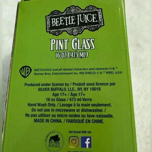 NEW Beetle Juice Pint Glass Cup Halloween Spooky Decor. Holds 16oz, glass tumbler cup. Brand new, never used or washed. I have to other Beetle Juice glasses in my closet. Bundle to save! ✨