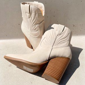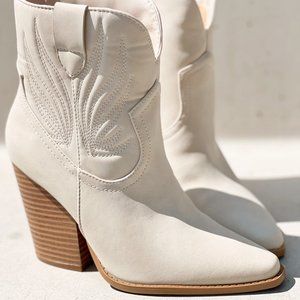 NEW Beige Distress Nubuck PU Western Cowboy Block Heel Ankle Booties Boots Shoe