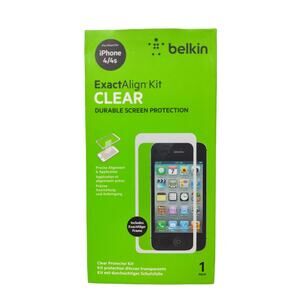 Belkin Exact Align Kit Clear Screen Protector For iPhone 4 and 4S is in new sealed unused condition. Includes exact align frame. 2014 Manufacturer Date.