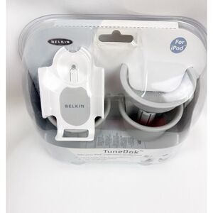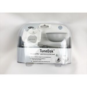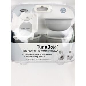 The Belkin TuneDok Car Cup Holder is a stylish and functional accessory designed specifically for iPods. Take your iPod experience on the road. Features AirGrip design for secure placement. Ensures exact fit and stability in your car's cup holder. Repositions easily with ratcheting neck. The white and gray color scheme gives it a sleek and modern look, while the car holder feature allows you to safely and securely attach your iPod to your car's cup holder. This convenient mount ensures that you can easily access your iPod while driving, making it perfect for audiophiles on the go.