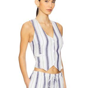 NEW Bella Dahl Cinch Back Vest in Coastal Ombre Stripe White Blue Tank Linen