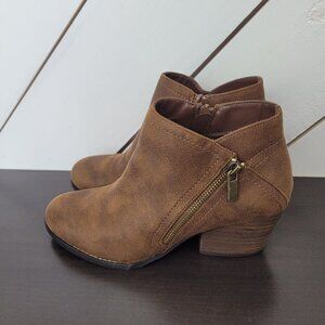 NEW Bella-Vita Bobbi Womens 7M Tan Ankle Booties Zipper & Stacked Heel/ 7CT