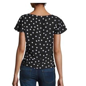 NEW Belle Sky Black Polka Dot Top Lace up Ties L