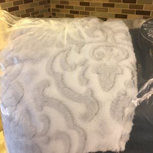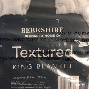 NEW Berkshire Textured King Blanket 110" x 90" Gray/white