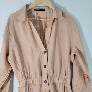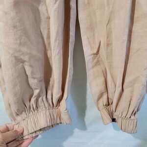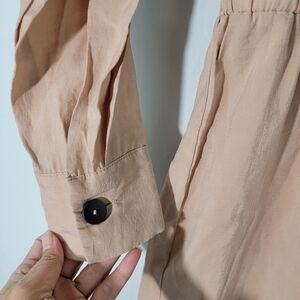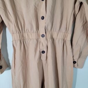 NEW Bershka Women Full Length Jumpsuit Sz L Tan Lyocell Elastic Waist Long Sleev