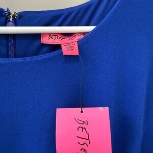 Brand new with tags! Stunning Betsey Johnson Ruffle-Front Belted Jumpsuit in gorgeous ultramarine blue, size 22W. This playful yet sophisticated plus-size jumpsuit perfectly captures Betsey's signature fun-spirited style with a combination of girly-girl charm and rock-and-roll edge.