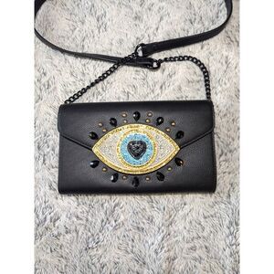 NEW Betsey Johnson Evil Eye Wallet Crossbody Purse Rhinestones Sequins Black