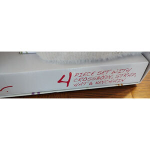 NEW Betsey Johnson Gift Boxed 4 Pc Set Apres Hat, Handbag, strap, keychain