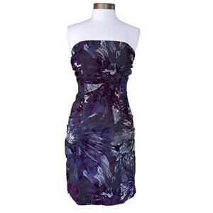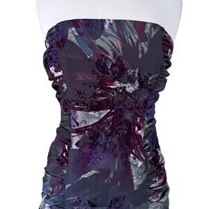 NEW Betsey Johnson Strapless Bustle Party Dress Sze 8 Velvet Taffeta Gray Purple
