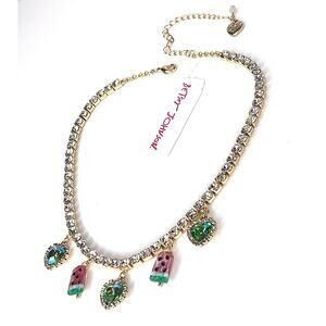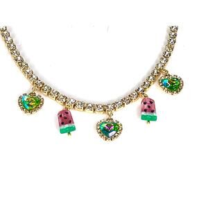 NEW Betsey Johnson WATERMELON POPSICLE NECKLACE Iridescent & Crystal Rhinestones