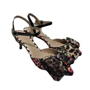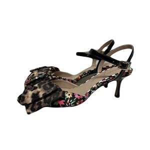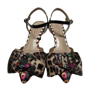NEW Betsey Johnson Womens Size 8 Leopard Floral Dress Pumps Gemstone Bow Accent