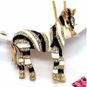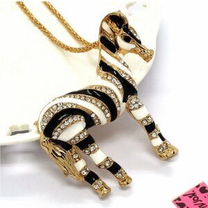 🦓 NEW Betsey Johnson crystal embellished zebra pendant necklace 🦓