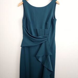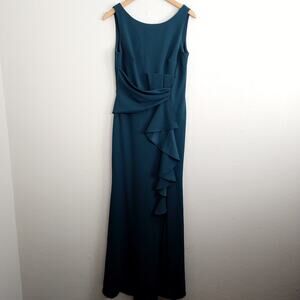 NEW Betsy & Adam Ruffle Bow Trumpet Gown Sleeveless Maxi Dress Pine Green