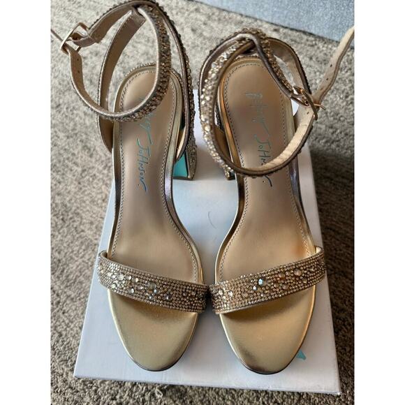 NEW Betsy Johnson Jet Light Gold Rhinestone Block Heel 6.5 Dress Sandal