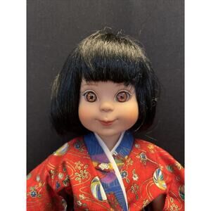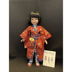 Introducing the beautiful Besty McCall "Kimono Betsy" 13" Japanese girl doll in traditional dress with a box. This stunning doll, manufactured in 1996, features straight black hair, brown eyes, and medium complexion. She is made of high-quality vinyl and cloth material and comes with a paper doll booklet.