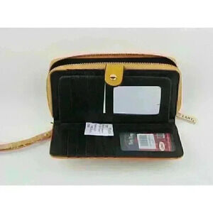 Pockets: interior zipper pocket, cash pocket, and multiple card slots