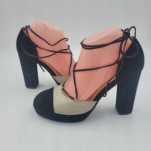 NEW Bettye Muller Madison Suede Platform Pump Natural & Black Women's Size 8M