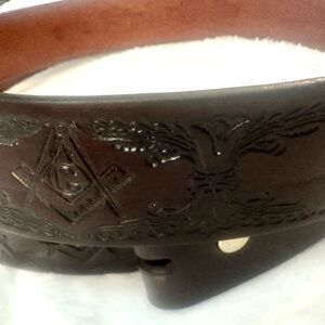 NEW Big Men’s Genuine Leather Dark Brown Freemason Square Logo Belt Masonic 58” Hand Crafted in Mexico. Adjustable. Add your own buckle, not included. Gift idea. #genuineleather #bigmen #freemason #masonic #giftidea #dad #logo