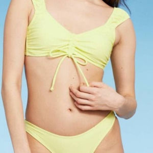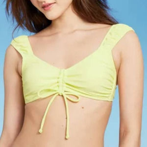 Cap-sleeve bralette bikini top from Wild Fable™ in a solid color. Soft and stretchy fabric offers comfy wear and movement. Features a front tie design with a back strap with hook fastening. Designed with removable cups for customizable coverage.