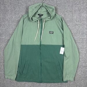 NEW Billabong Jacket Men Large Green Abner Full Zip Drawstring Hoodie Colorblock