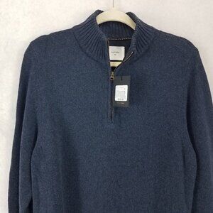 NEW Billy Reid Men's S Camel Wool Jersey Half Zip Pullover Sweater in Blue $295