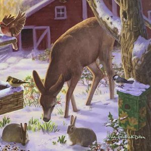 NEW Bird Feeder Puzzle Bits & Pieces Sunrise Feasting Deer Rabbits Birds NWOT