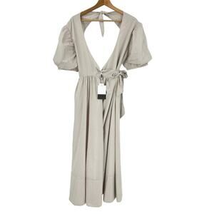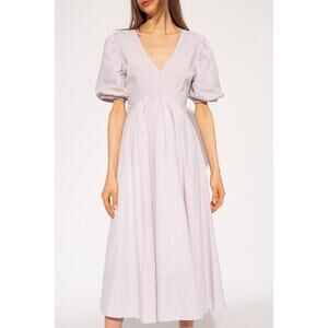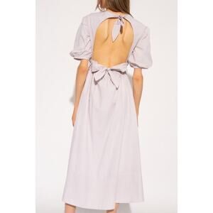 The Lola Dress is a sweet and stylish poplin dress. The puff sleeves, crossover bodice and bow detailing on the back give the dress a romantic feel. To toughen up the look, pair the dress with chunky boots.