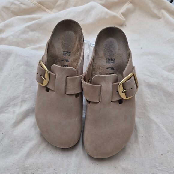 NEW Birkenstock Boston Big Buckle oiled leather Taupe clogs Soft footbed size 37 US 6-6.5