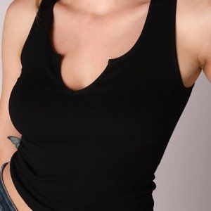 NEW Black Body Contouring Ribbed V Notch Detailing