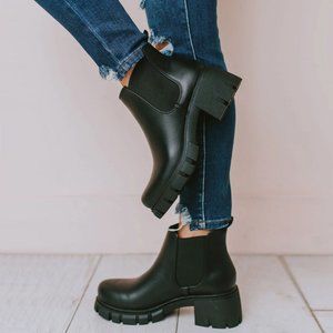 NEW🔥 Black Chelsea Ankle Boot Booties Block Heel Lug Platform Slip-On Round Toe