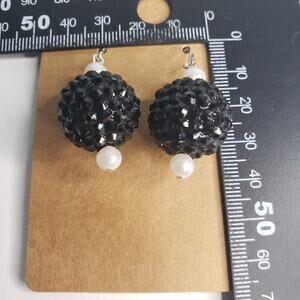 NEW Black Chunky Resin Bubbgum Ball Textured Sparkly Earrings Mod Fashion Jewerly