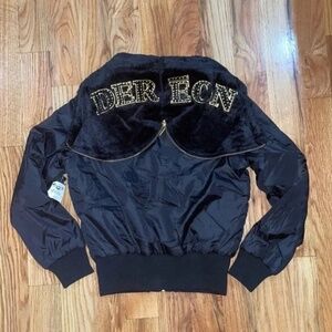 NEW Black Dereon Y2K 00's Rhinestone Nylon Fur Hood Puffer Jacket Coat M