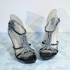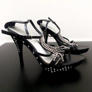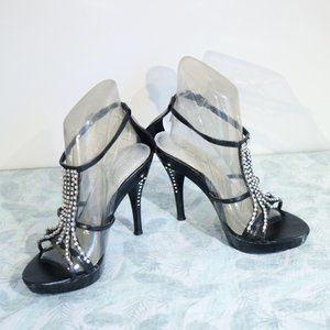 NEW Black Diamond Rhinestone Strappy Stiletto Heels