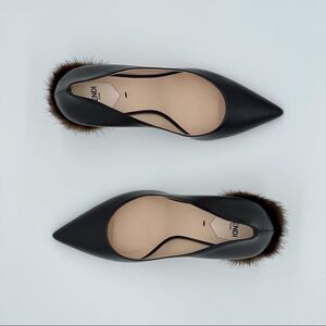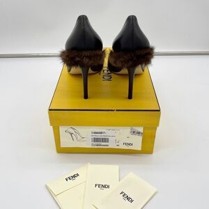 NEW Black Fendi Heels Leather and Mink Pumps Women’s Size 39.5