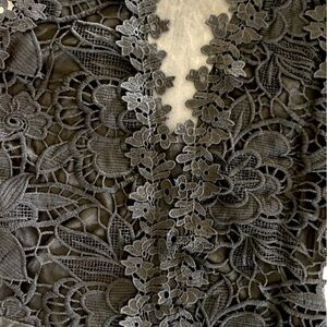 NEW Black Floral Crochet Dressy Bodysuit Deep-V Sheer Front & Back Size S & M