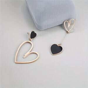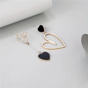 NEW Black & Gold Asymmetrical Heart Earrings Trendy Dangle Chain Jewelry