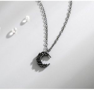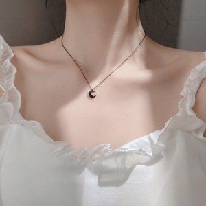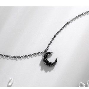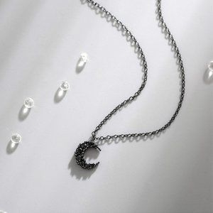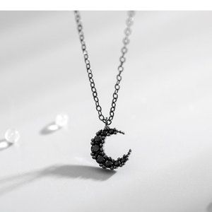 NEW Black Gold Black Diamond Simple Moon Necklace