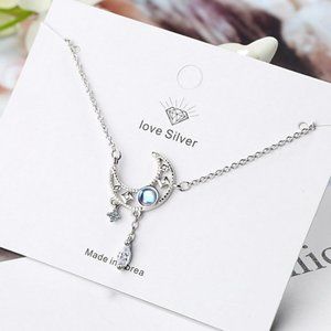 NEW Black Gold Black Diamond Simple Moon Necklace