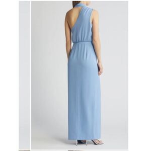 NEW Black Halo Eve Fantasia One Shoulder Neck Scarf Gown Blue Bliss Size 12 NWT